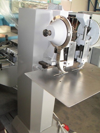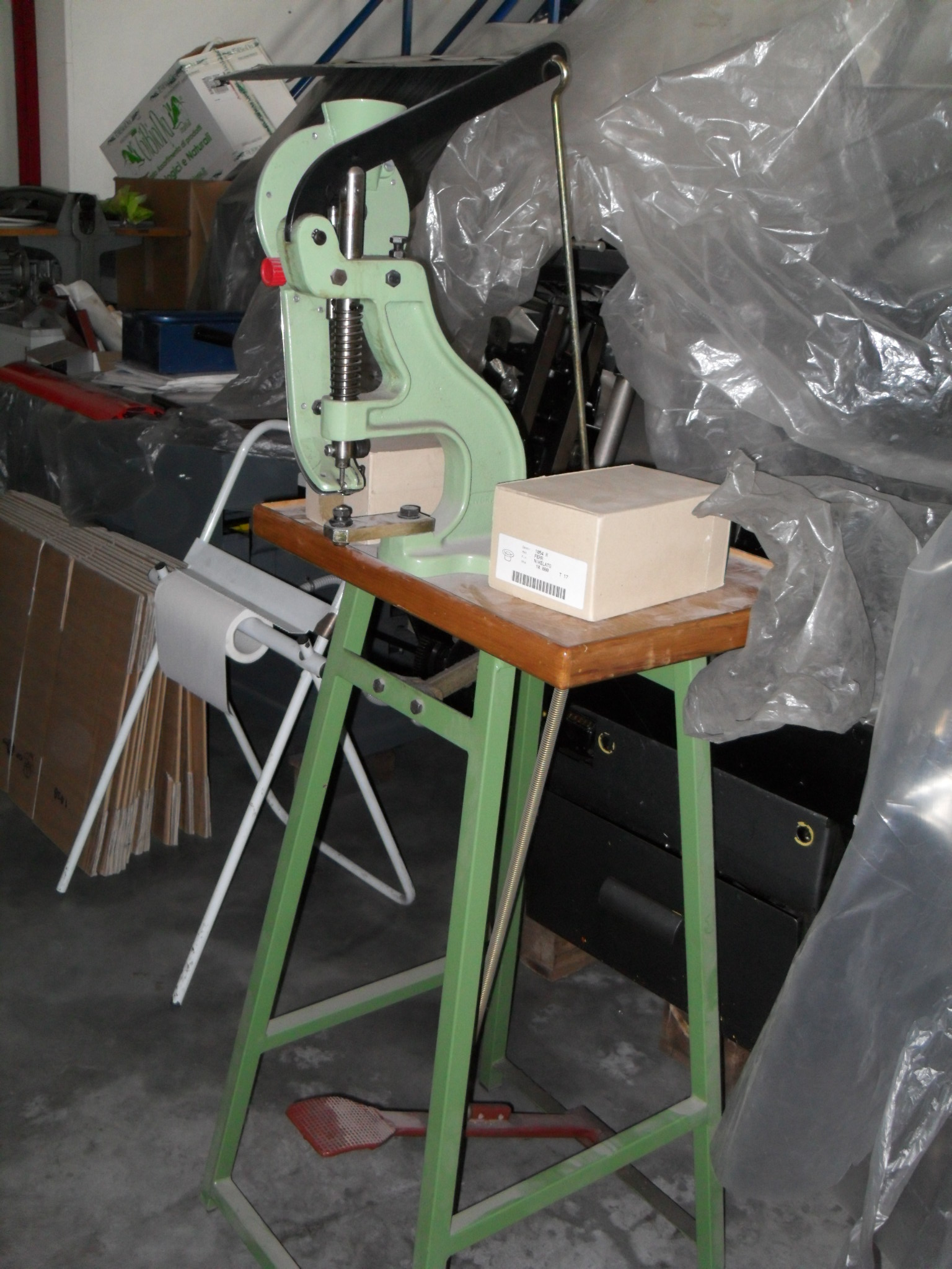 OCCHIELLATRICE AUTOMATICA A 2 TESTE, interasse occhielli mm 55 (min), mm 250(max), piano di lavoro cm 60x40, peso kg 120. macchina revisionata.